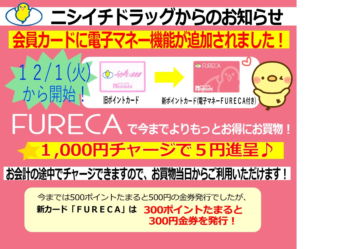 いよいよニシイチドラッグの会員カードFURECAが始動